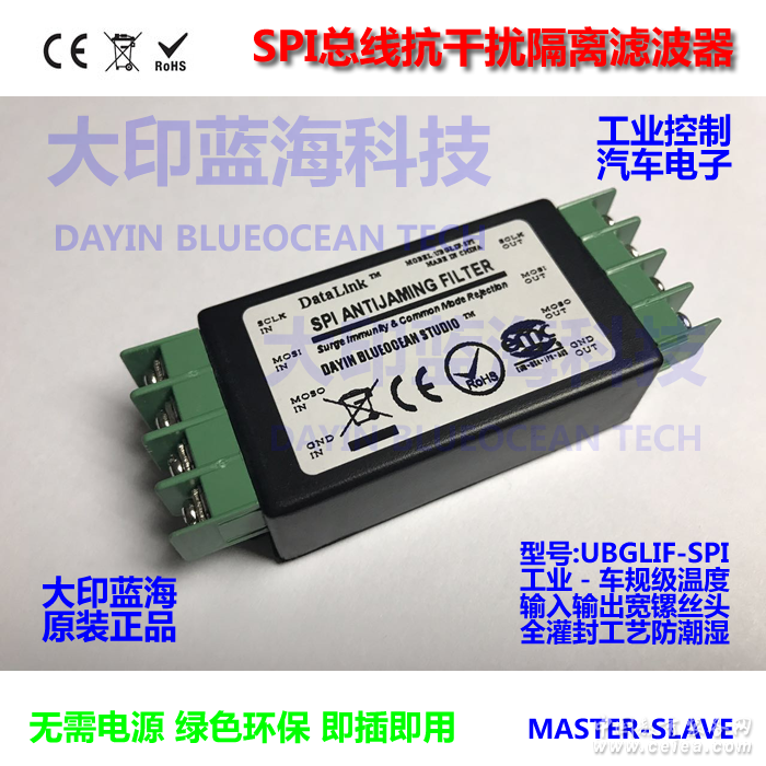 產(chǎn)品賣(mài)點(diǎn): 本產(chǎn)品為大印藍(lán)海強(qiáng)SPI通訊總線(xiàn)數(shù)據(jù)抗干擾器總線(xiàn)信號(hào)濾波器BMS 支持全雙工 無(wú)需電源隔離濾波去共模干擾 通信 汽車(chē)電子 工控應(yīng)用級(jí)間共模濾波 置于SLAVE端 凈化 對(duì)講降噪 開(kāi)關(guān)量整形抗干擾器控制汽車(chē)電子濾波器消防隔離器通信對(duì)講降噪器整形器共模干擾器信號(hào)降噪器 激光測(cè)距 PWM數(shù)據(jù)信號(hào)濾波器 步進(jìn)電機(jī)脈沖信號(hào)共模干擾降噪濾波器 礦用氣體檢測(cè)控制