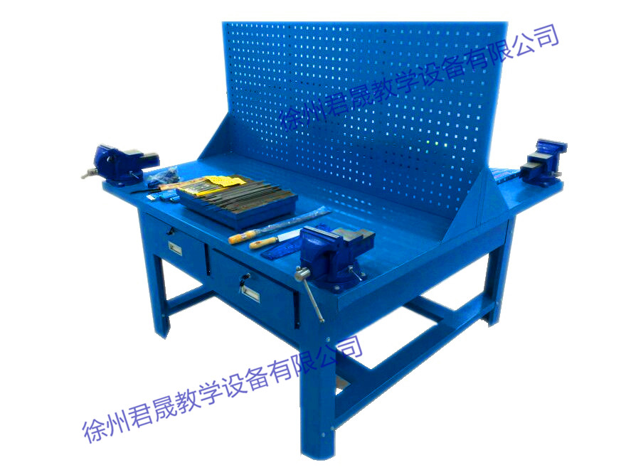 產(chǎn)品詳細(xì)介紹概述: 本公司生產(chǎn)鉗工實(shí)驗(yàn)室設(shè)備根據(jù)教學(xué)要求與多家工廠共同開發(fā)生產(chǎn),該產(chǎn)品配備的鉗工工具通用化,標(biāo)準(zhǔn)化和專用化,可提高學(xué)生的操作技術(shù)和動(dòng)手能力。鉗工大多是在鉗工臺(tái)上用手工工具操作,對(duì)工件進(jìn)行加工。手工操作的特點(diǎn)是技術(shù)性強(qiáng),加工質(zhì)量的好壞主要取決于操作者技術(shù)水平的高低,它的工作范圍較廣,具有萬(wàn)能性和靈活性的優(yōu)勢(shì)且不受設(shè)備、場(chǎng)地等條件的限制,因此凡是采用機(jī)械加工方法不太適宜或難以進(jìn)行機(jī)械加工的場(chǎng)合,通常由鉗工來(lái)完成,尤其是機(jī)械產(chǎn)品的裝配、調(diào)試、安裝和維修等更需要鉗工,所以說(shuō)鉗工不僅是機(jī)械制造工廠中應(yīng)用最廣泛的工種之一,因此鉗工實(shí)驗(yàn)室設(shè)備也是各大院校,技校不可缺少的實(shí)訓(xùn)教學(xué)產(chǎn)品。 鉗工:鉗工大多是用手工工具并經(jīng)常在臺(tái)虎鉗上進(jìn)行手工操作的一個(gè)工種。 鉗工的主要任務(wù)---- 加工零件:一些采用機(jī)械方法不適宜或不能解決的加工,都可由鉗工來(lái)完成。如:零件加工過(guò)程中的劃線,精密加工(如,刮削 挫削樣板個(gè)制作模具等等)以及檢驗(yàn)及修配等。 裝配: 把零件按機(jī)械設(shè)備的裝配技術(shù)要求進(jìn)行組件,部件裝配合總裝配,并經(jīng)過(guò)調(diào)整,檢驗(yàn)合試車等,使之成為合格的機(jī)械設(shè)備。 設(shè)備維修:當(dāng)機(jī)械在使用過(guò)程中產(chǎn)生故障,出現(xiàn)損壞或長(zhǎng)期使用后精度降低,影響使用時(shí),也要通過(guò)鉗工進(jìn)行維護(hù)合修理。 工具的制造和修理:制造和修理各種工具,卡具,量具,模具和各種專業(yè)設(shè)備。 鉗工各項(xiàng)操作技能---- 劃線,鏨削,鋸削,銼削,鉆孔,擴(kuò)孔,锪孔,鉸孔,攻螺紋,套螺紋,矯正和彎形,鉚接,刮削,研磨,機(jī)器裝配調(diào)試,設(shè)備維修,測(cè)量和簡(jiǎn)單的熱處理。 鉗工的主要工具---- 鉗工主要是以 銼刀 鉆 鉸刀 老虎鉗 臺(tái)虎鉗 車床 銑床 磨床為主的工具進(jìn)行裝配和維修的技術(shù)工人 。 鉗工的種類---- 鉗工(普通鉗工):對(duì)零件進(jìn)行裝配,修整,加工的人員。 機(jī)修鉗工:主要從事各種機(jī)械設(shè)備的維修修理工作。 工具鉗工:主要從事工具,模具,刀具的制造和修理 。 鉗工臺(tái)主要參數(shù): 鉗工臺(tái)的規(guī)格:1500×1500×1500mm(桌面高800+防護(hù)網(wǎng)700)。 防護(hù)網(wǎng)規(guī)格1500×700×30沖孔金屬鋼板,帶加強(qiáng)筋。 臺(tái)面采用雙面結(jié)構(gòu),即4個(gè)操作工位共用一個(gè)平臺(tái)。以節(jié)約成本和空間。 臺(tái)面材料采用50毫米刨花板(或松木)覆2毫米厚鋼板(表面應(yīng)防銹處理)。 桌架立柱采用2.0厚鋼板折型,規(guī)格100×80×750 桌架橫梁及加強(qiáng)梁:1.5厚鋼板折型規(guī)格100×40×1.5 抽屜采用1.0mm鋼板,桌面鐵皮全部包起來(lái) .抽T每個(gè)可以承重40KG. 鉗工實(shí)驗(yàn)室(一張桌4座/組)每組詳細(xì)配置如下: 可以完成常用工具的認(rèn)識(shí)和使用,錘、鋸、銼、鑿、劃線、裝配、調(diào)試、安裝、維修等教學(xué)工具。 序號(hào) 名 稱 規(guī) 格 單位 數(shù)量 1 鉗工桌 150×150×80 張 1 2 臺(tái)虎鉗 5寸 臺(tái) 4 3 鋼鋸架