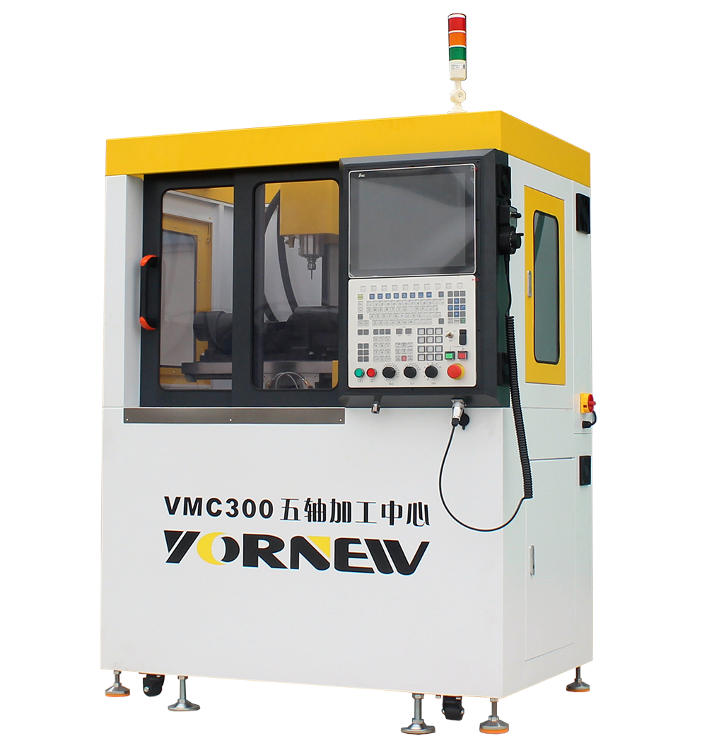 產品詳細介紹型號:VMC300 名稱:小型五軸加工中心 顯著特點 1、 使用220伏電壓,占地小,耗電少,采用全封閉安全設計結構,提高觀摩安全性的同時又保障機器的結構穩固性美觀; 2、高強度樹脂砂鑄件,功能加大,5軸聯動,配置YORNEW M5五軸聯動數控系統,適用國際通用程序,故障自動檢測報警功能、斷電記憶功能; 3、配置精密高速主軸單100-24000rpm,變頻G指令控制主軸轉速,主軸電機功率1.5Kw; 4、配置8工位快速換刀系統,換刀時間4S,使用氣壓0.6 Mpa,可極大提高復雜產品的加工效率及加工精度; 5、采用C3級精密雙螺母滾珠絲桿,經中周波熱處理及精密研磨,各軸施以預拉減少熱變形,定位及重覆精度高; 6、XYZ軸采用伺服電機,最快移動速度10000mm/min; 7、機器采用雷尼紹激光干涉儀精確檢測,確保各軸精度背隙,保證定位精度; 8、帶工冷冷卻系統,配有5軸電子手脈三檔可調極大地方便操作和對刀,機器配置有自動間歇潤滑系統; 9、配有移動腳輪和水平腳墊,放便設備的移動與定位; 10、加工材料廣泛,可以加工鋼件、銅件、鋁件、塑料件等。