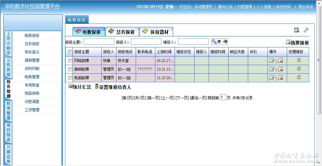 產(chǎn)品詳細(xì)介紹《數(shù)字校園綜合管理系統(tǒng)》是在仔細(xì)研究現(xiàn)代教育環(huán)境下教育信息化對(duì)學(xué)校管理模式改變的基礎(chǔ)上,在近10年的教育改革中提供大量的一線教育管理經(jīng)驗(yàn),結(jié)合數(shù)百個(gè)學(xué)校大量的實(shí)踐經(jīng)驗(yàn)基礎(chǔ)上,開發(fā)出來(lái)的一套面向廣大中小學(xué)的集辦公、管理、公文處理為一體的自由組合軟件,致力于提高中小學(xué)信息化的發(fā)展。 系統(tǒng)針對(duì)辦公管理中的公文處理效率低、工作流程不明朗等事務(wù)繁多、信息傳輸量大的特點(diǎn),強(qiáng)調(diào)了信息共享和利用,信息傳達(dá)及時(shí),提高網(wǎng)絡(luò)協(xié)同辦公的能力。本軟件主要由平臺(tái)管理、家校聯(lián)系、留言管理、公務(wù)安排、每日薦讀等模塊組成,可實(shí)現(xiàn)學(xué)校精神引領(lǐng)、辦公提醒、及時(shí)交流等功能,提升學(xué)校各部門之間溝通的有效性,實(shí)現(xiàn)校園“無(wú)紙化,零電話”的高效率辦公,幫助中小學(xué)實(shí)現(xiàn)工作有序可控。 本系統(tǒng)所包含的模塊: 門戶網(wǎng)站 校園辦公自動(dòng)化 資源平臺(tái)(含資源) 成績(jī)管理分析跟蹤 智能排課 學(xué)校論壇、教研 家校互動(dòng) 教師日志 教師成長(zhǎng)記錄 一站式登錄,統(tǒng)一用戶管理! |