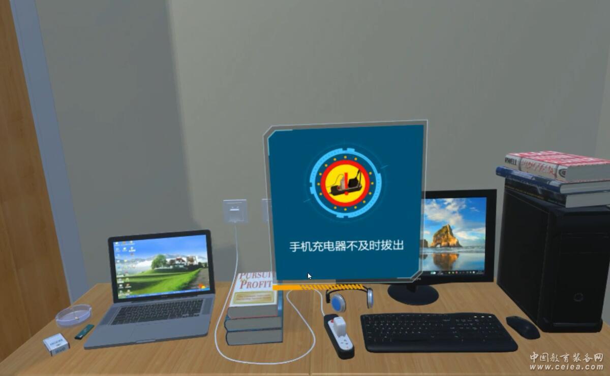 二﹑產品基本功能 用戶可以通過攜帶HTC VIVE 頭盔切換和移動視角,并可以跟虛擬場景進行交互動作,逐一排查宿舍內的床上,桌子上,衛生間里面等地方的消防安全隱患點,沉浸式學習消防安全內容。 用戶還可以通過虛擬現實頭盔查看文字說明和感受語音提示。