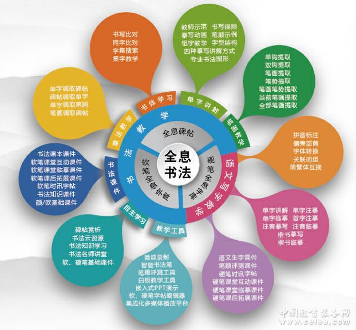 豐富的教學資源 1. 軟筆全息字庫: 配備綱要規(guī)定的顏、柳、歐、趙、褚五種書體的10個楷書碑帖所有單字,以及含仿顏楷書、仿歐楷書在內(nèi)的8953個軟筆全息手寫字庫。 2. 硬筆全息字庫: 配備GB2312-80與GB12345-1990編碼標準的標準楷書、鋼筆楷書、鋼筆顏楷、鉛筆顏楷、鉛筆楷書、標準粗篆、標準細篆、鉛筆篆書、隸書等硬筆全息書法字庫,每套書體完全包含國務院公布《通用規(guī)范漢字表》的一、二級常用字,硬筆手寫全息字庫總字數(shù)高達80000字; 3. 國學典籍軟硬筆臨摹練習課件: 系統(tǒng)配備A4頁面排版的《三字經(jīng)》等國學經(jīng)典全文軟筆臨摹課件以及中小學課程中涉及的數(shù)百首唐詩、宋詞、元曲等硬筆臨摹練習課件,方便直接打印,學生可使用單鉤與雙鉤臨摹。 4. 名家書寫視頻示范: 系統(tǒng)提供遵循GB2312-80與GB12345-1990編碼標準的8953個顏體楷書字以及綱要臨摹范本推薦的顏、柳、歐、趙、褚,楷書碑帖字名家書寫示范視頻,視頻采用雙路采集合成錄制,多角度清晰呈現(xiàn)名家書寫過程,體會提按、力度、節(jié)奏等變化;學習運筆、運腕等書寫技巧;視頻播放時,可同時顯示原帖字作為參照。 5. 原帖摹寫動畫演示: 三萬多個軟硬筆摹寫動畫,以原帖為背景的任意單字以及單字的任意筆畫進行摹寫動畫演示,充分展示顏、柳、歐、趙、褚字體風格。 6. 課本配套課件: 提供教育部公布的《2015年義務教育書法教學用書目錄》中配套的書法課本課件,以及制作工具。 7. 書法基礎課件: ① 軟筆:配備按基本筆畫、偏旁部首、結字的基本原理及古人論書等內(nèi)容系統(tǒng)化編寫的顏體與歐體軟筆楷書基礎課件。 ② 硬筆:配備按基本筆畫、筆順規(guī)則、間架結構、永字八法、結構分析、漢字演變、偏旁部首等內(nèi)容編寫的硬筆楷書基礎課件。 8. 書法碑帖資源: 包括綱要規(guī)定的10個楷書碑帖、4個行書碑帖、4個隸書碑帖以及綱要推薦的30個賞析碑帖,并提供按篆、隸、草、行、楷五種書體劃分的200多個擴展賞析碑帖。 9. 書法知識課件: 系統(tǒng)提供200余篇近萬字的名家簡史、書法簡史、書法故事等書法知識課件,教師可按年代或人物直接選用,無需查詢和制作知識課件。 10. 專用書法圖形和常用文本: 提供筆勢線、輪廓線、序號線、米字格、田字格等幾十個書法教學專用圖形,以及數(shù)百個常用圖形;提供色彩、字體多樣化的標題字輸入框以及可添加拼音、設置多種書體的常用寫字格文本框。默認字體為手寫楷書,完全滿足學生對硬筆的摹寫、臨寫學習活動。 11. 書法樂園 洲洋華樂書法樂園提供兩千多個書法名家講座視頻,可在書法教學過程中直接調用;學生還可針對書法樂園中專業(yè)教學視頻配合課堂內(nèi)容進行任意深度自主學習;書法樂園還提供了智能化文本輸入框,教師或學生可根據(jù)自身水平和學習興趣輸入需要練習的文本內(nèi)容,打印十幾種書體的軟硬筆臨寫與摹寫模進行練習。