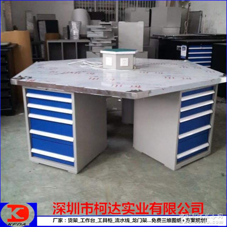 7。六角鉗工臺(tái)的邊長(zhǎng)寬度和臺(tái)面高度多少比較合理? 按照人機(jī)工程學(xué)原理,標(biāo)準(zhǔn)高度為800mm,單邊長(zhǎng)1.2米,直徑2.4米,適合中國(guó)工人的身高和工作效率。