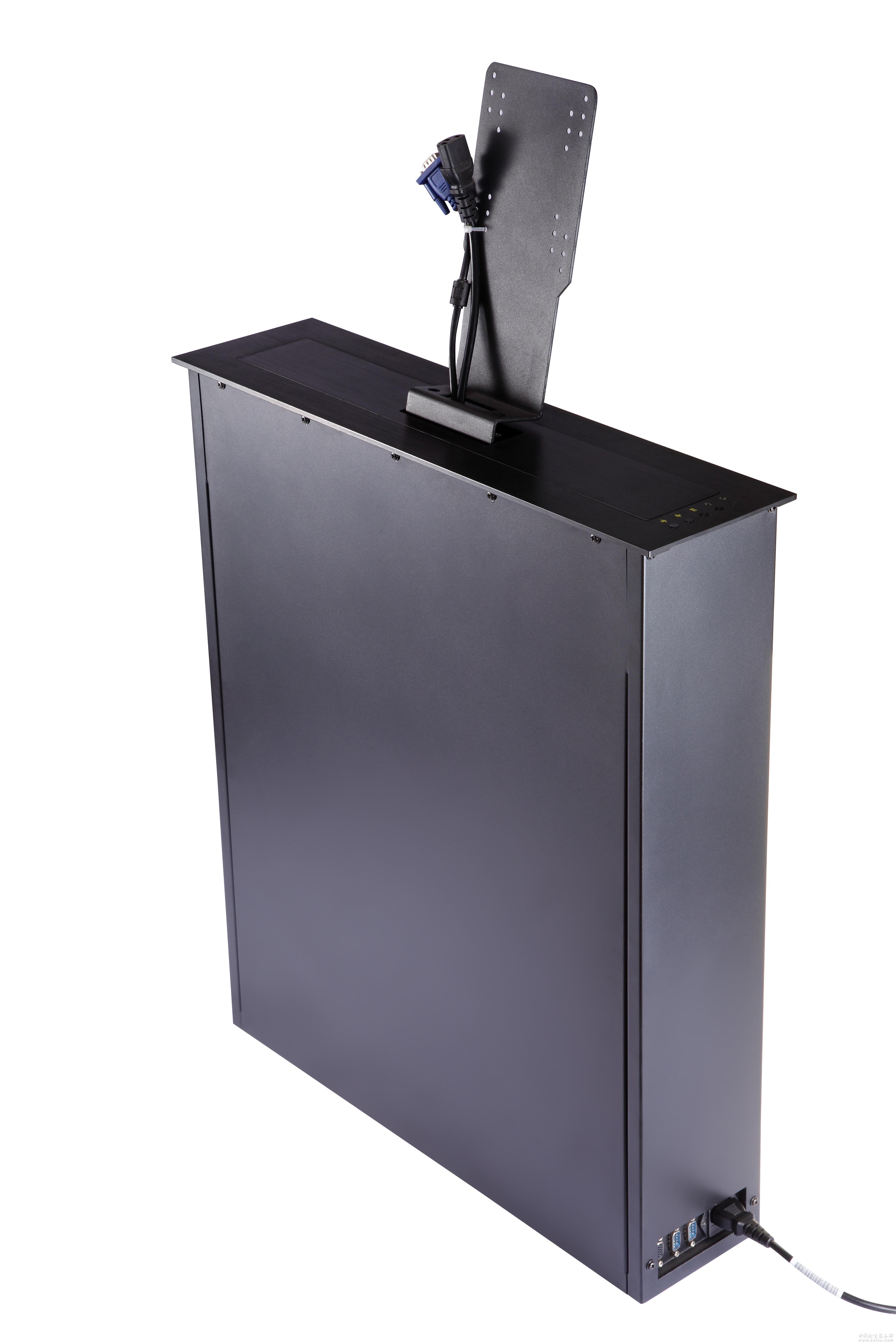 功能特色: 1、智能升降,美化桌面,多功能辦公,吸引廣大潛在用戶群體; 2、人體工程學原理,對廣大用戶視覺距離保護,并根據不同需要調整視覺要求效果; 3、符合智能化會議系統要求及辦公要求,提高會議/辦公工作效率; 4、方便用戶自行選擇顯示屏及顯示屏品牌,滿足不同客戶群體需求; 5、體現會議/辦公智能特色,孵化現代科技靈感,體現新時代會議及辦公特點; 6、有效運用,靈活打破傳統會議及辦公無法做到的局限;