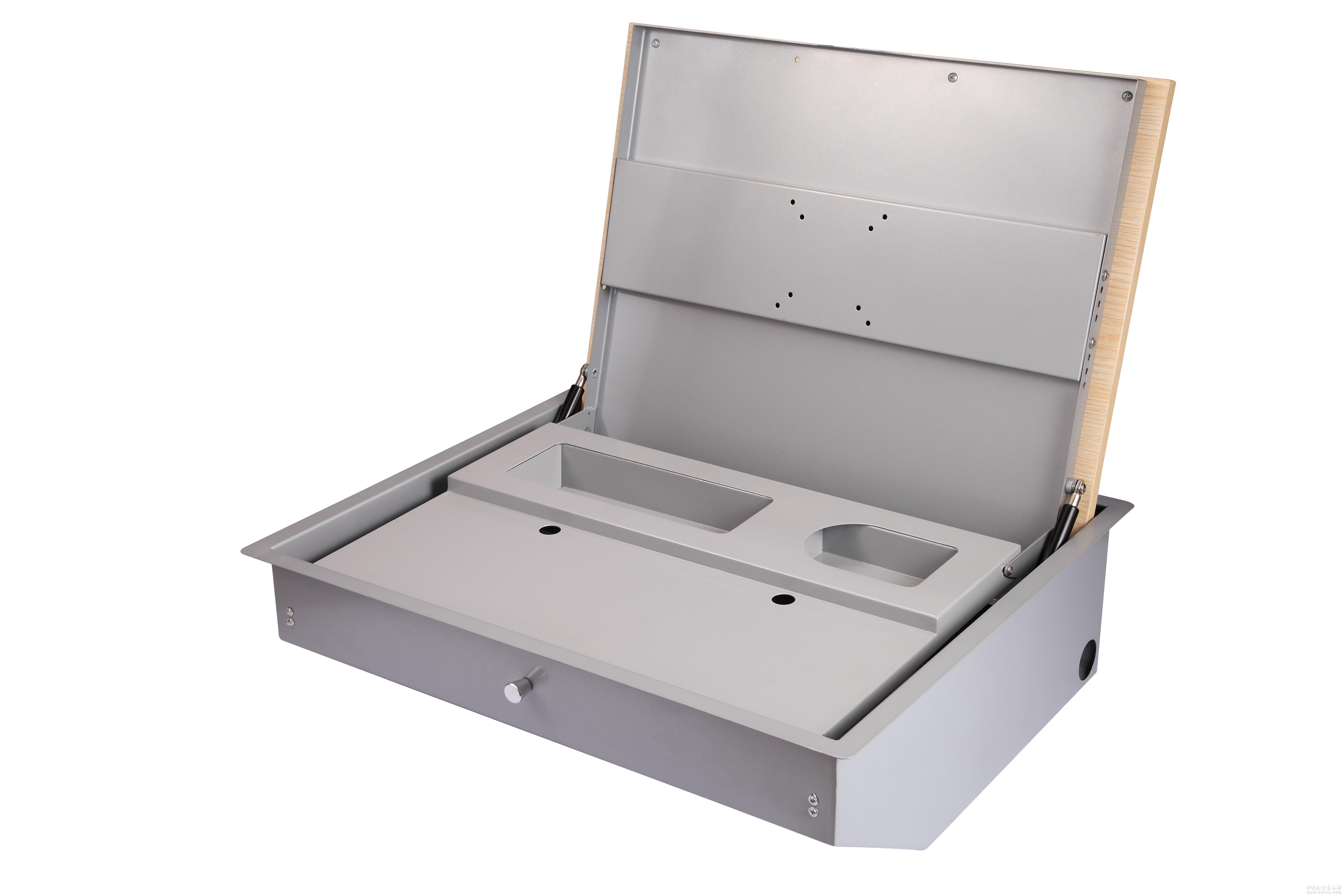 產品詳細介紹產品簡介: F12手動系列液晶屏翻轉電腦機箱主要應用于各種電教系統,培訓系統,辦公場所等。產品采用全手動翻轉機構設計,安裝方便,操作簡單。當打開翻轉機箱時,液晶屏翻轉到預設的角度,鍵盤也同時自動升起與桌面齊平。關閉時,顯示器自動翻轉隱藏于桌子內部與桌面平整一致,靈活切換,起到對多媒體教學方式的最大化利用,并做到對液晶屏的保護及防盜、防塵等功能。現已涉及使用場所包括政府、部隊、學校、企事業單位等智能化應用。