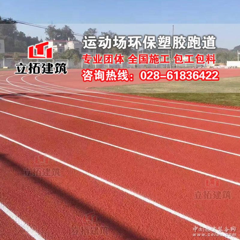 透氣型跑道分兩層:底層采用塑膠顆粒與聚氨酯膠水以5:1/6:1比例混合攪拌后攤鋪,面層用專用噴膠設備噴涂EPDM顆粒與聚胺酯的混合體形成的塑膠場地。