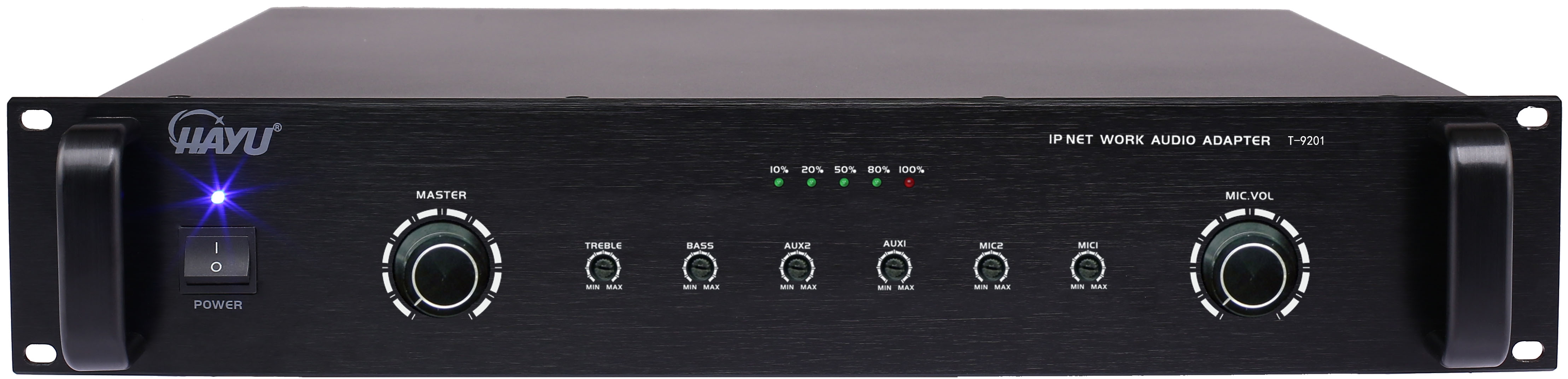 產(chǎn)品詳細介紹標準機柜式設計,黑色氧化鋁拉絲面板,人性化的抽手,考究的工藝,盡顯高檔氣質;能通過網(wǎng)絡接收IP網(wǎng)絡廣播服務器遠程傳輸?shù)囊纛l文件和控制信號; 音頻采用硬解碼形式,內置硬件編解碼芯片,實現(xiàn)本地實時信號采集功能以及音頻解碼功能; 具有接收廣播呼叫、廣播功能:通過電腦可對單個或多個IP終端、分區(qū)、全區(qū)呼叫; 具有1路線路輸出接口,支持DHCP自動獲取IP地址; 終端具有遠程優(yōu)先功能,能實現(xiàn)自動強插功能,實現(xiàn)分級優(yōu)先、緊急播音等; 終端內置智能電源管理功能,能外接周邊設備,如功放等設備,根椐聲音自動開啟或關閉外接功率放大器的電源; 設有10路輸入通道:包括5路話筒(MIC)輸入,3路標準線路你好(AUX)輸入,2路EMC緊急線路輸入; 緊急輸入(ENC1、2)具有最高優(yōu)強行切入優(yōu)先功能; 其次話筒1(MIC1)是為第二級優(yōu)先,話筒(MIC2、3、4、5)與線路(AUX1、2、3)輸入為第三級; 話筒(MIC)輸入通道和線路(AUX)輸入通道均可獨立調校音量,緊急音頻信號輸入無音量調節(jié),自動默音至-30dB,設有高音(TREBLE)和低音(BASS)獨立調節(jié); 具有功放后控接口:具有功放軟開啟關閉控制接口,能外接多臺帶后控的大功率功放,無需配置電源時序設備,可直接控制多臺大功率功放電源開關; 具有三級信號優(yōu)先功能,高級別可打斷低級別的廣播; 標配1路10/100M RJ45網(wǎng)絡接口; 1路RJ45網(wǎng)絡接口,2路音頻輸入接口,1路功放后控接口,1路220V外控電源接口,1路220V電源。 |
