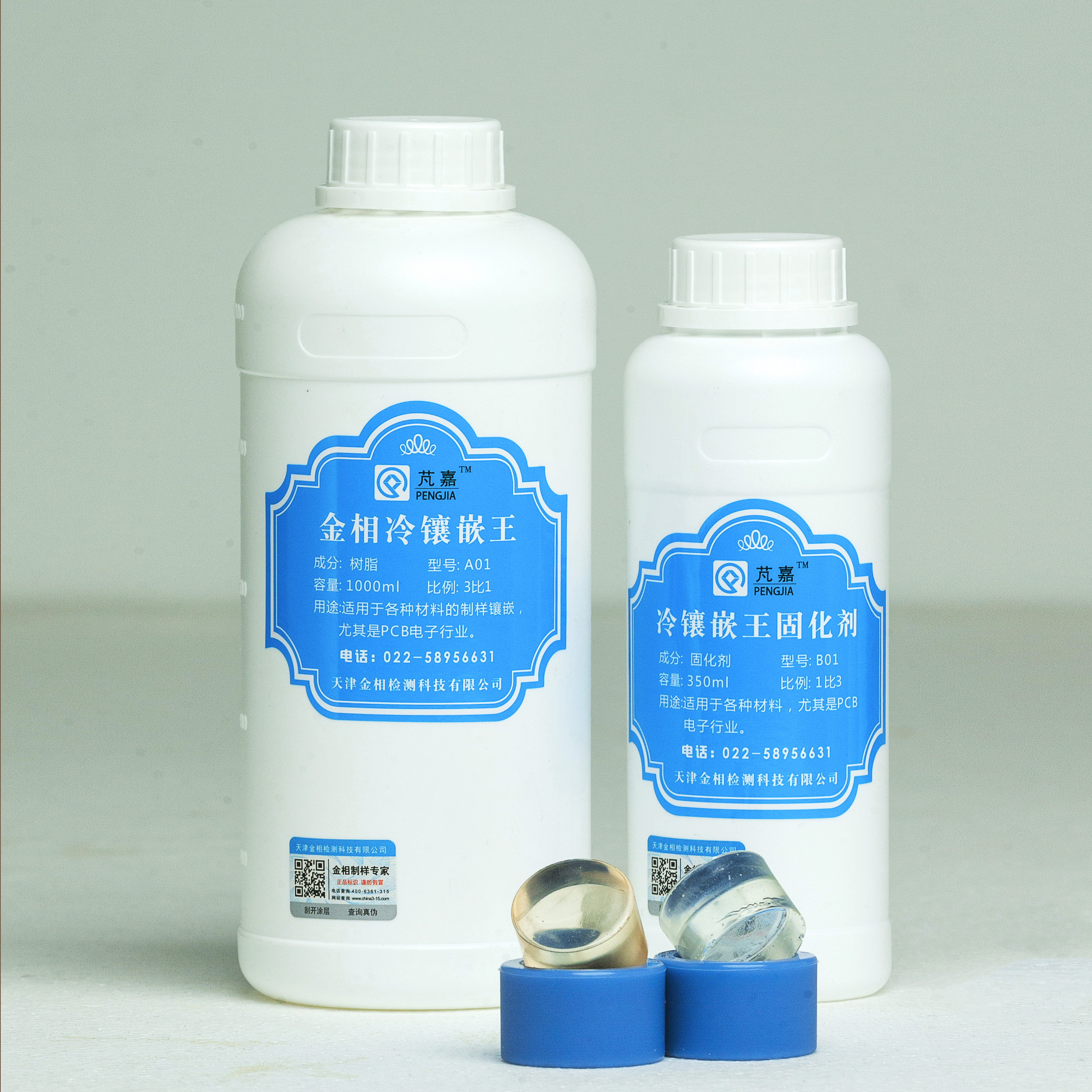 水晶王 包裝: 樹脂1000ml液體+ 50ml固化劑 附件:Ф30冷鑲嵌模1個 + 塑料杯、攪拌棒 如水晶般透明。 固化時間:25℃ 30分鐘 使用比例:樹脂100:固化劑1.8 替代Struers的SeriFix 適用于各種材料,尤其是PCB、SMT等電子行業。