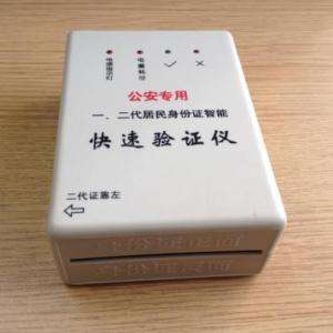 一、產品說明 1、技術先進、專利發明、有極高的識別準確率,且同時可以識別第一、第二代身份證。 2、操作簡單容易、不用培訓、一看既會操作,節省培訓費用。 3、充電式設計、便攜性強,一次充電可連續驗證3000張,驗證只需一秒,效率高。 國內唯一、一機兩用可驗證第一代、第二代居民身份證的專用設備,該機被國內公安部指定為配套裝備,對身份證進行真假檢驗,及時、準確、完整、有效。