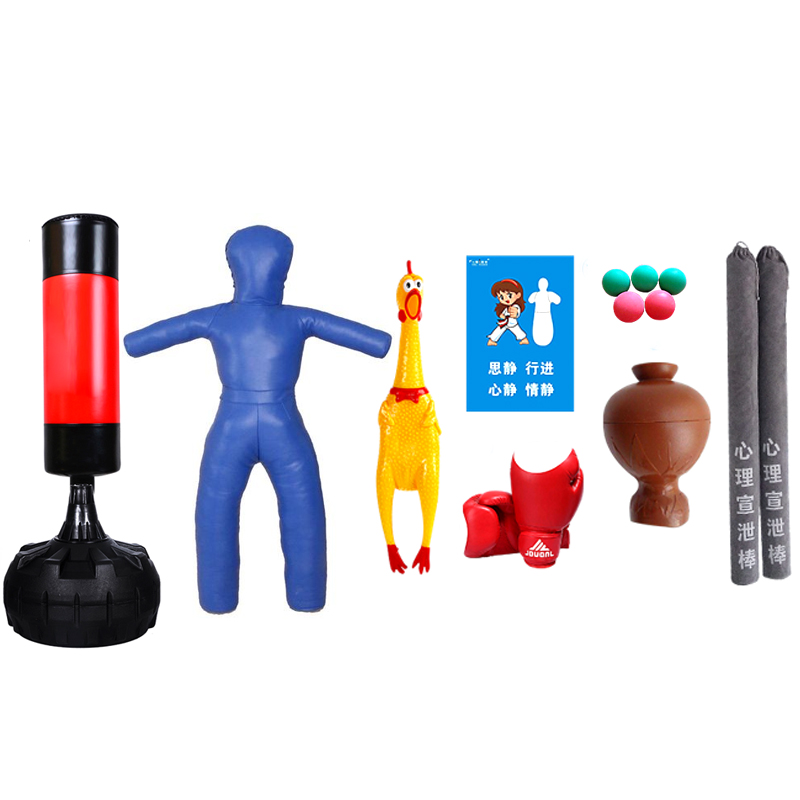 產品詳細介紹宣泄柱1個+摔跤宣泄人1個+慘叫雞1個+宣泄手套2副+吶喊壺1個+宣泄棒2根+宣泄掛圖2張+摔打宣泄球4個 三、設備詳情 (1)宣泄柱:產品材質為pu材質,尺寸為:175cm,圓形底座設計,底座可注沙或注水; (2)摔跤宣泄人:多層優質加厚皮革料,高:160cm,寬:80cm,手臂伸出:25cm,頭部高度25cm,重量40kg,紅色配黑邊, (2)宣泄手套:優質PU革,內部壓縮海綿一次成型,有很好的透氣性。(可有效的緩沖打擊時的撞擊,采用了輕型耐用材料); (3)慘叫雞:材質:搪膠;規格:9*42cm;使用:擠壓雞的肚子會發出叫聲; (4)吶喊壺:尺寸:整體高度為18.5cm,最大直徑13cm,ABS材質,凈重210g,頸部部分可以讓手恰好牢牢抓住,瓶口的弧度剛好適合嘴型,瓶身的弧度造型也能起到隔音效果。傳出的聲音僅為原來的1/3。 (5)宣泄棒:安全環保,外套絨布印有“心理宣泄棒”字樣,手感極佳,長75CM。 (6)宣泄掛圖:高清環保相紙,顏色清晰,永不退色。尺寸為40cm*60cm (7)摔打宣泄球:采用高檔加厚pvc材質,圓形球體加“羊角”形手柄設計,方便抓握;內部充氣設計,不傷手 |
