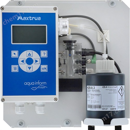 產品特點/Features&Benefits ● 測量精度高 ● 自動校準、自動診斷和監測 ● 低維護和試劑消耗 ● 中英文LCD 彩屏顯示 ● 連續測量或間隔測量(0~360min) ● 4路可編程觸點輸出 ● 2路可編程數字輸入(可與外部設備聯動) ● 安裝方便,操作簡單 ● 數據存儲, 故障記錄, RS485, 4-20 mA輸出 技術參數/TechnicalData 型號 Maxpro9200 測量方法 滴定比色法 測量時間 約2-8分鐘,取決于水的堿度 準確性 所選試劑上限值的±2% 重復性 所選試劑上限值的±2% 顯示 LCD彩屏 可選單位 °dH、°f、ppmCaCO3、mmol/l 輸出 1、4路可編程繼電器輸出(max.250V,4A)2、1路 4 – 20 mA信號,max. 750 Ω 3、1路RS485輸出 輸入 1、IN1輸入(開始分析)   2、IN2 輸入(停止分析) 分析周期 時間間隔測量(0~360min)/外部信號/流量信號 沖洗時間 可設定(15~1800s) 水質要求 pH:4 – 10 ;鐵:< 3 ppm ;銅:<0.2 ppm ; 鋁:< 0.1 ppm ; 錳:< 0.2 ppm 溫度 環境:10°C – 40°C,水樣:5°C–40°C 壓力 ca. 0.2 - 5 bar (max.) (建議1 -2bar) 電源 85 - 265 VAC, 47-63Hz,功耗:25VA(運行時),3.5VA(待機時) 防護等級 IP65 尺寸 410x310x200mm(WxHxD) 安裝方式 掛壁式 訂貨號 21-9200-015 試劑類型及測量范圍: 訂貨號 試劑型號 dH 0f ppm CaCO3 mmol/l 21-9201-01 TC9201 0.26-10.54 0.469-18.76 4.69-187.6 0.094-3.752 21-9202-02 TC 9202 0.40-15.82 0.704-28.16 7.04-281.6 0.141-5.632 21-9203-03 TC 9203 0.53-21.08 0.938-37.52 9.38-375.2 0.188-7.504 21-9204-04 TC 9204 0.79-31.62 1.407-56.28 14.07-562.8 0.281-11.26 21-9205-05 TC 9205 1.05-42.16 1.876-75.04 18.76-750.4 0.375-15.01 21-9206-06 TC 9206 2.37-94.85 4.221-168.8 42.21-1688.4 0.844-33.77 (測量范圍根據所選試劑而定,測量值誤差約為測量值的±2%,500ml,有效期2年) 邁斯拓(上海)儀器設備有限公司 |