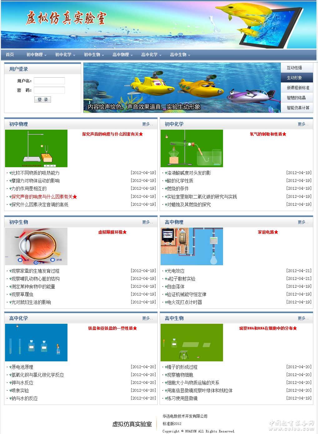 華鈞中學仿真實驗平臺共有物理、化學、生物三科,囊括新課標初、高中物理、化學、生物教材幾乎所有學生實驗內容,中學仿真實驗系統每一個實驗都按照模擬的科研活動來設計,同時又讓學生掌握實驗的基本技能、操作規范、自我測評。其中,實驗模擬是主要內容,是一個用虛擬現實技術開發的模擬實驗室。學生通過鼠標可以輕松操作整個實驗過程,例如實驗儀器的組裝、操作,實驗化學物品的取出和放置,實驗過程控制等;同時,實驗現象逼真且有趣味性,不但讓學生做實驗如若身臨其境,而且還集娛樂與探索科學知識溶合于一體。這套軟件本著操作通用易學、生動形象的設計理念,為用戶展示了一個界面友好、數據準確、內容豐富的實驗操作平臺。中學仿真實驗系統讓學生通過實驗活動驗證所學的理論知識,掌握實驗技能,提高動手操作能力,培養觀察能力、分析能力、想象設計能力、創新能力和科學探究的能力。