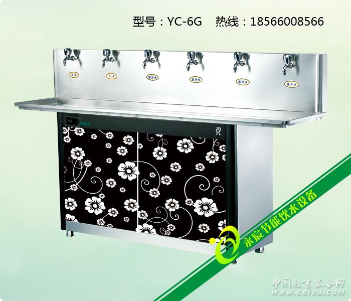校園直飲水機(IC卡飲水機系列)的用途和特點:產品型號:YC-6G水膽容量:35L供 水 量:開水60 L/H、溫開水350L/H功 率:6KW電 源:380V 50Hz過濾系統:三級過濾外形尺寸:190×43×108可供人數:150~200人飲用校園直飲水機外觀優勢:外觀設計時尚美觀,前門板采用不銹鋼太陽花花紋設計,典雅、時尚校園直飲水機獨特優勢:1、跟飲用水接觸的配件:100%采用食品級304不銹鋼深加工組裝而成,不含任何對人體有害的重金屬殘留物。2、擁有世界頂尖飲水設備研發團隊,自主研發出顛覆性的全自動水位裝置。確保水罐時刻處于常壓狀態。3、全電腦智能控制,永不干燒;VFD顯示,采用自有發明專利智能電腦控制系統。4、推進分層加熱技術:取水后,設備采用逐層推進方式進水,逐層加熱,逐層沸騰。冷熱水離,電腦控溫,徹底杜絕“千沸水”。5、高效節能:采用國際優質防火保溫材料,高效新一代專利熱能交換。同等條件下,實測對比數據為:飲用開水比普通開水器省電39.6%,飲用溫開水比普通開水器省電83.23%。6、六重安全保護設計:控制部分全采用12VDC弱電控制。裝配自動防漏電、干燒、蒸汽、缺水、超溫保護。7、按鍵開關式,龍頭水嘴全304不銹鋼制作,126萬次使用測試,30萬次安全破壞性實驗。8、水質清純,無異味、設有加熱排空電磁閥,加熱時水里的異味、微量有害離子隨蒸氣完全排出。9、安全可靠、飲水機顯示‘飲用’時完全停止加熱、真正做到水電分離、在飲用過程中絕不會有觸電事故的發生。10、真正做到無混合水和千沸水:提示清晰明確、有‘非飲用’和‘飲用’信號提示。11、布線美觀,維修方便,安全可靠:設有多孔絕緣線槽,防止電線與金屬箱體直接接觸,同時防止電線老化而漏電短路;無需扎線,維修時只需揭開線槽蓋板,即可快速修復。12、配置:荷蘭進口世界第一品牌活性炭�?蛇x擇加裝抑制水垢生成裝置、 RO處理裝置、IC水控裝置。