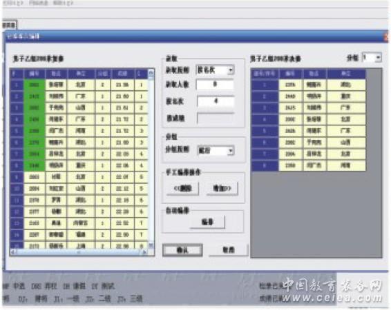 比賽過程的信息處理包括后續(xù)賽次錄取編排、各種統(tǒng)計信息、各種文書文檔等,提供自動編排與手工調(diào)整兩種方式,在此基礎(chǔ)上生成分場秩序冊;針對不同項目提供大量統(tǒng)計信息,如:全能項目積分、運(yùn)動員等級、破紀(jì)錄信息等,一旦比賽成績傳送完成,上述信息立即自動生成,個別信息(如破紀(jì)錄)還將自動提示。