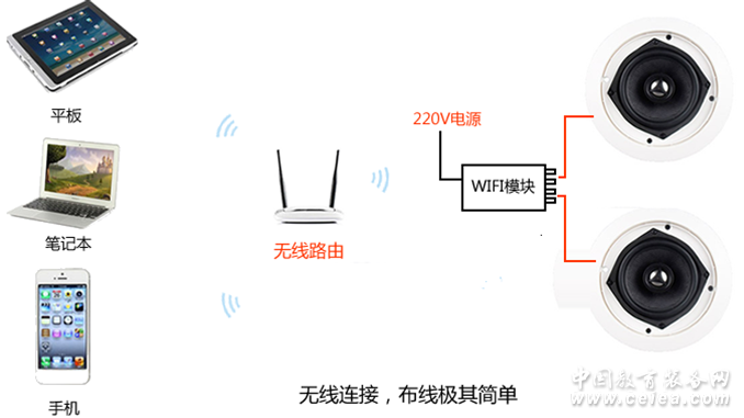 產品詳細介紹無線WIFI背景音樂系統,使用WIFI無線連接,讓你擺脫有線的煩惱,享受無線的精彩。支持所有安卓系統手機,iphone,電腦,平板等設備,聽音樂從未如此無拘無束。集成強勁的電源功放,無需購置額外的電源功放就能爆發出震撼的音質效果