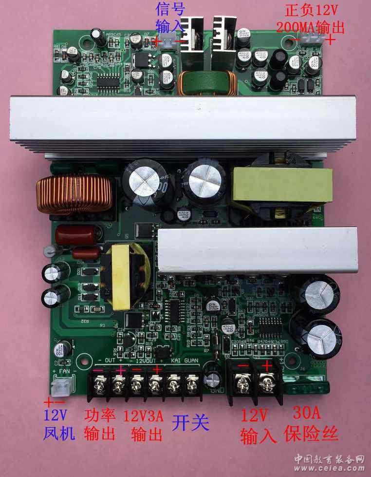 產品詳細介紹 本數字功放板由我司2015年開發、設計、批量生產并出口最新產品。采用直流供電,體積小、重量輕。具有性能穩定、音質優美、信噪比高、效率高,低溫工作等特點。其功能可根據整機廠的要求設計生產,是開發新產品、更新產品、節約開發周期的最佳配套產品。 特性指標: 高 效 率:93% 額定輸出功率:300W可根據需要選擇 定阻 輸出:4-16Ω 供電 電壓:直流12V/24V/36V/48V56V/68V/80V可根據需要選擇電壓 頻 寬:20Hz-20KHz 信 噪 比:100 db 失 真 度: 1KHz 0.1% 300w8Ω 輸入、輸出接口: 智能風機控制: 當散熱器溫度上升到50度時,風機開始工作。