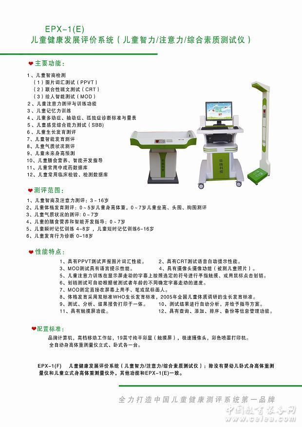 產品詳細介紹兒童發展評價系統 EPX-1E型主要技術性能參數