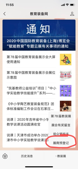選擇"教裝展">"線上中國(guó)教裝展 "查看