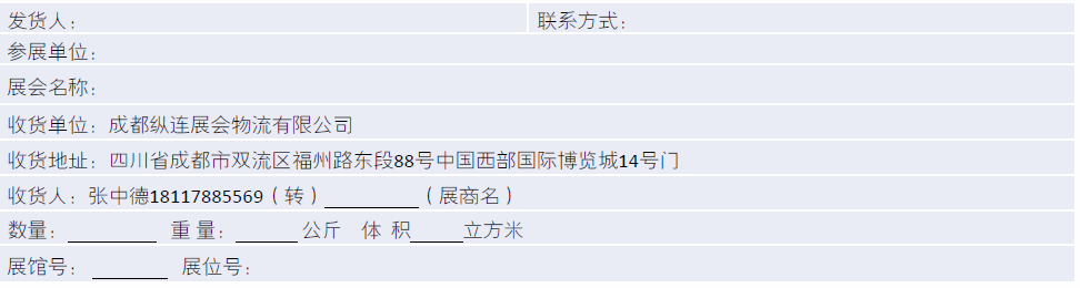 2、所有參展物品需在布展前三天運(yùn)到成都主城區(qū)。